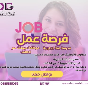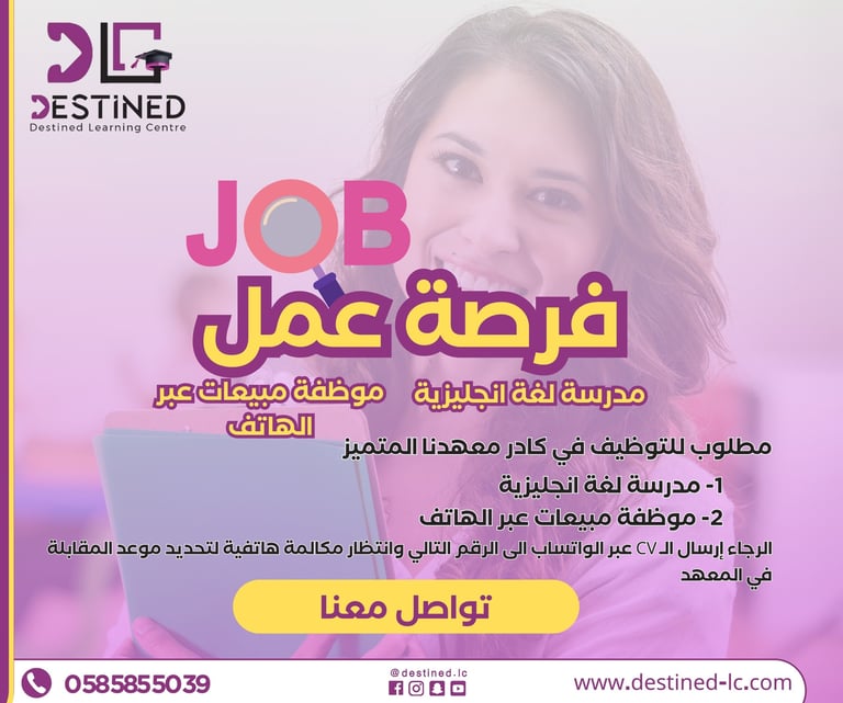 💼 #فرص_عمل 💼 #وظائف_شاغرة 💼 #مدرسة_لغة_إنجليزية 💼 #موظفة_مبيعات_عبر_الهاتف 💼 #انضم_إلينا 💼 #فرص_وظيفية 💼 #معهد_Destined_Learning
